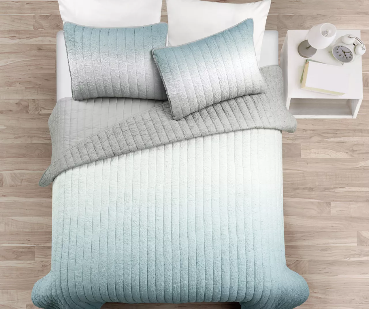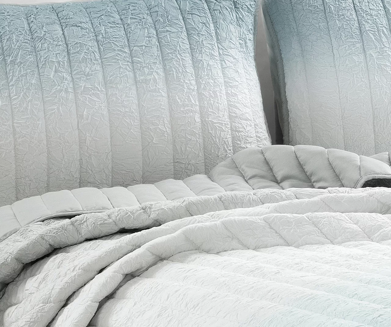 Style and texture find a unique balance in this quilt set from Lush Decor. The cozy crinkled fabric is detailed with a fun quilted pattern and a trendy ombre design in shades of blue and gray. It’s a lovely contemporary pick for the master or guest bedroom and delivers cozy comfort through the night.