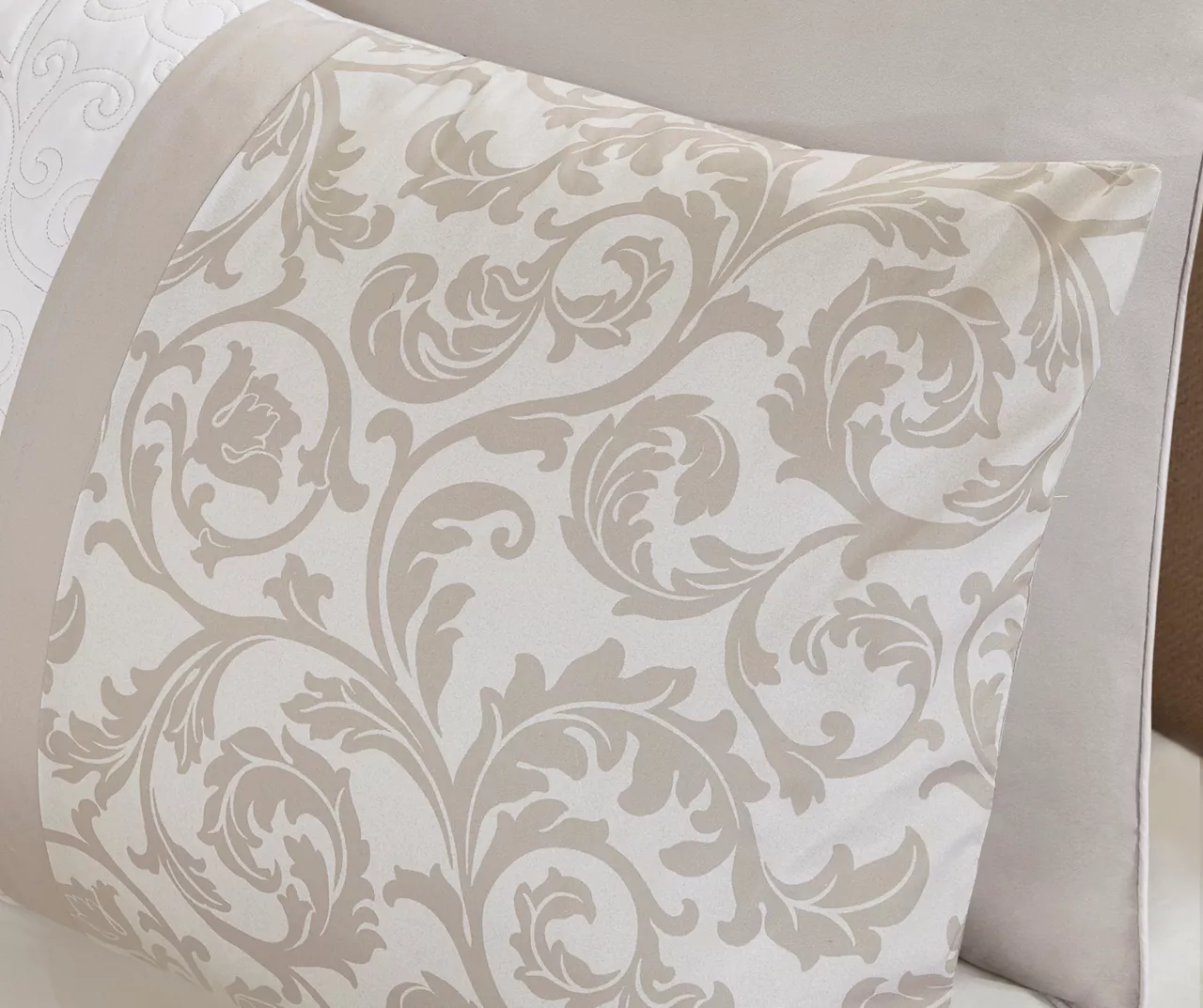 - Hypoallergenic polyester filling in the comforter and decorative pillows