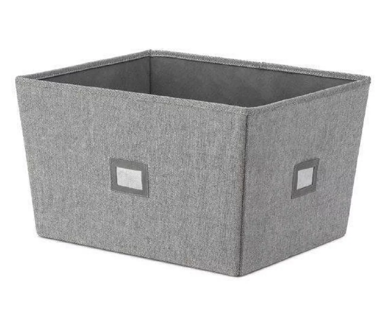 Organize your surroundings with the help of this sleek fabric storage tote from Whitmor featuring a neutral gray color, angled sides and a label holder on the front that makes it easy to find what you need.