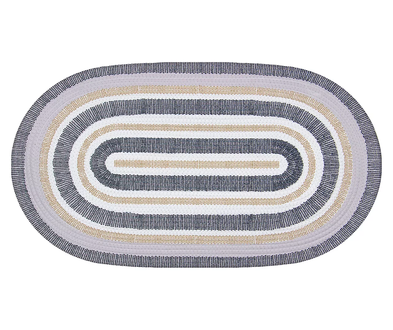 With a braided oval shape, contemporary pattern in neutral shades and a skid-resistant backing, this accent rug provides warmth and comfort underfoot as well as modern style that stays in place.