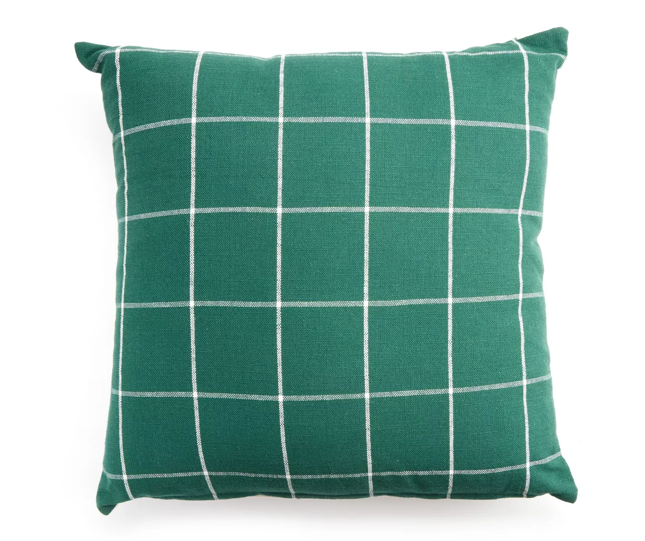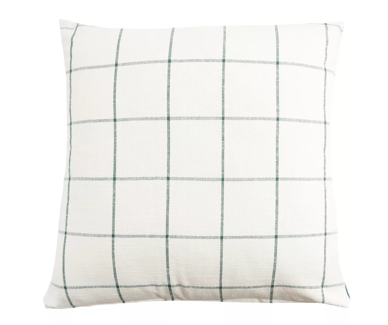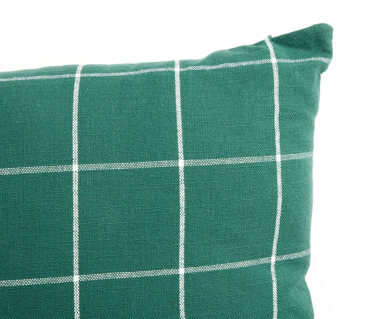 Bolster your home décor with the timeless charm and soft comfort of this elegant throw pillow. The two-sided design allows you to switch up your style effortlessly and features a windowpane plaid print in flipped shades of green and white.