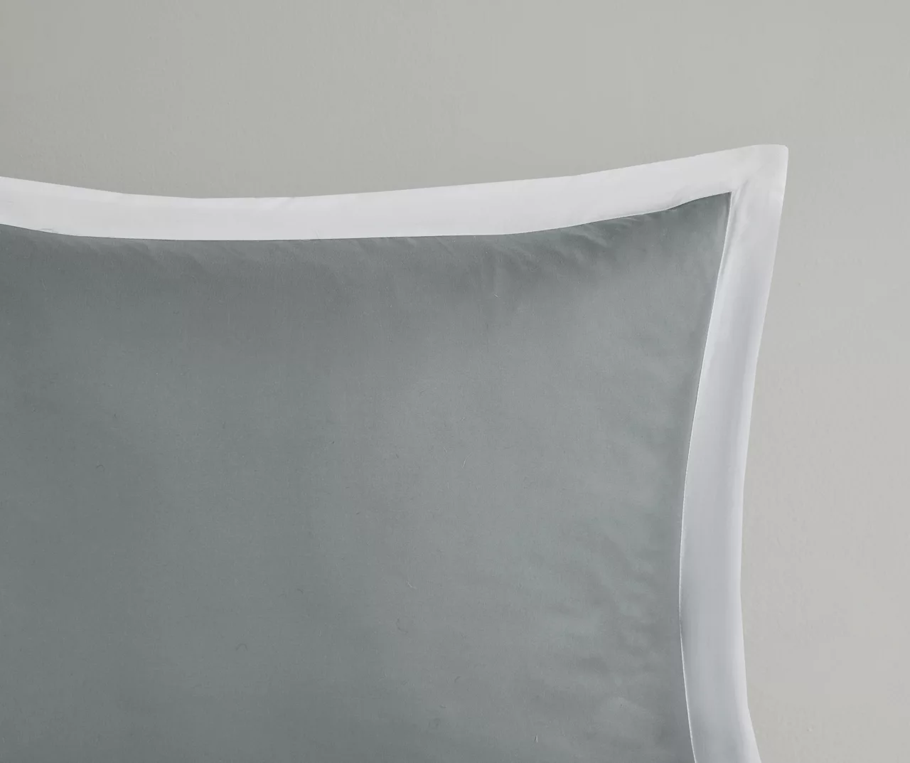 Transitional charm meets modern style in the Kingston comforter set. The microfiber comforter features a contrasting buffalo check design with quilted and pieced details for a sophisticated casual look that easily coordinates with any bedroom décor. This set features a solid reverse on the comforter and two matching shams with Euro shams that pair handsomely with the soft comforter. Two coordinating decorative pillows and a solid bed skirt provide the finishing flourish to this casual bedding set.