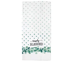 “Simply Blessed” White & Green Polka Dot Kitchen Towel, 2-Pack