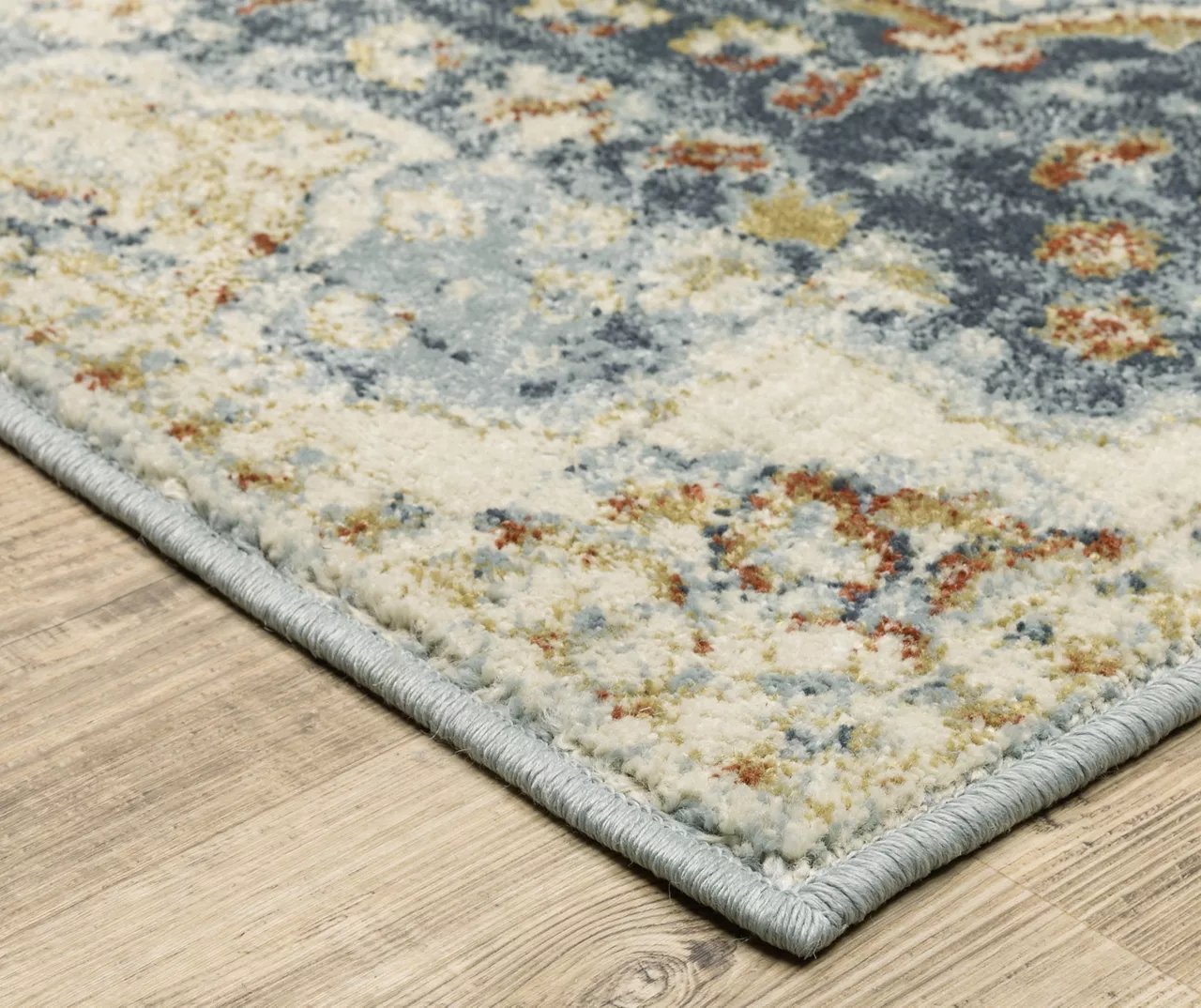 The Ludlow collection is power-loomed in the USA from tri-colored and textured polypropylene yarn. It features a traditional floral medallion design in beautifully updated, yet classic colors of deep blue, cool soft blue, tan and rich rust red with warm ivory. The multi-colored yarns add depth and visual interest to the designs and the textured effect creates a very soft feel underfoot.
