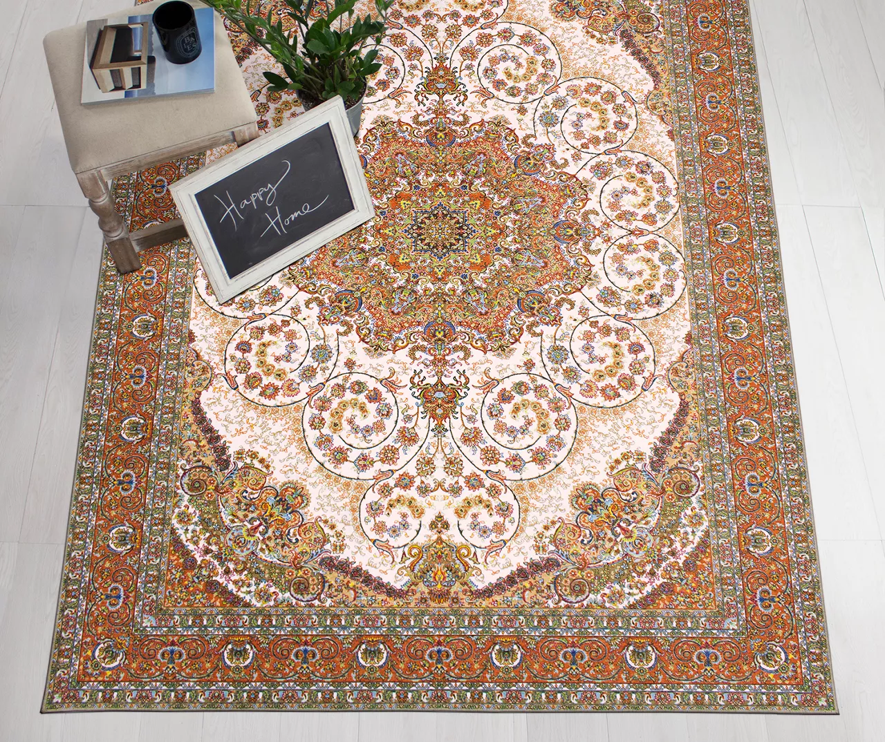 If traditional design is your thing or if you’re looking to add some eclectic flair to your contemporary space, then the Zahara rug in amber is the perfect rug for you. Crafted from high-quality fibers, this vintage-inspired design is colorfast, cleans easily and has a stylish low profile. Pair this luxurious amber and ivory-colored rug with bohemian decor for a homey vintage look or the hottest styles from Paris for the perfect blend of new and old in your home, office or RV. Protect your floors from spills and scratches and wash away germs with a full line of no-fuss rugs. My Magic Carpet is an eco-friendly alternative to traditional rugs. This rug is made of non-allergenic, stain-resistant microfiber polyester, with a waterproof inner liner and a non-slip backing.