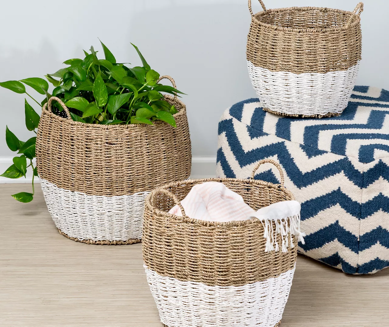 Keep your space tidy with this basket set from Honey-Can-Do that can hold anything from throw blankets to towels or books. These storage baskets are nestable when not in use for space-saving convenience, and a matching lid makes it easy to keep things covered and out of sight.