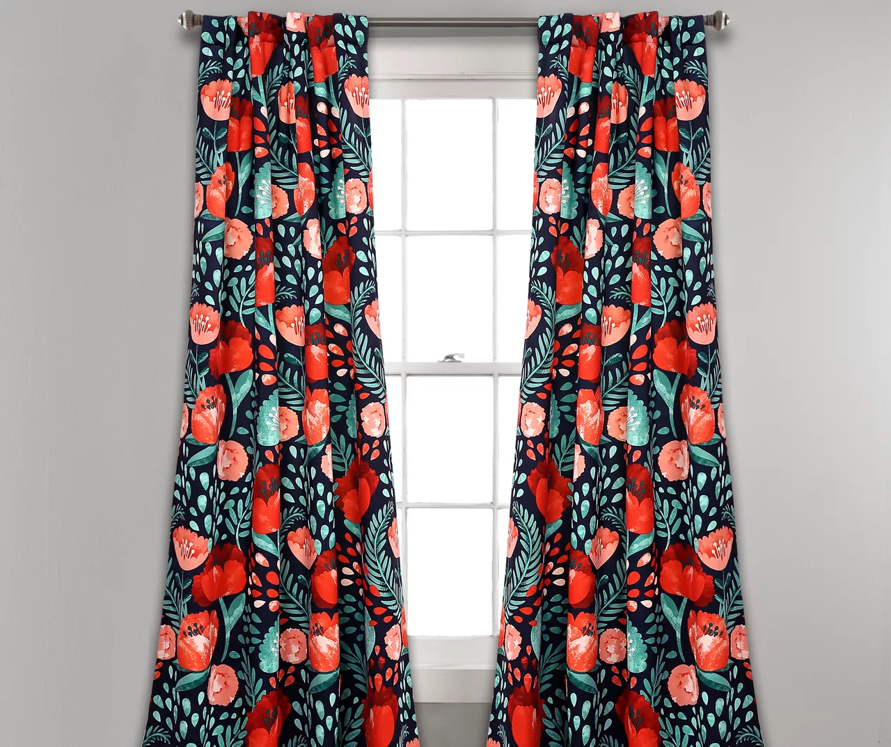 - Room-darkening curtain panels help filter out sunlight and provide privacy