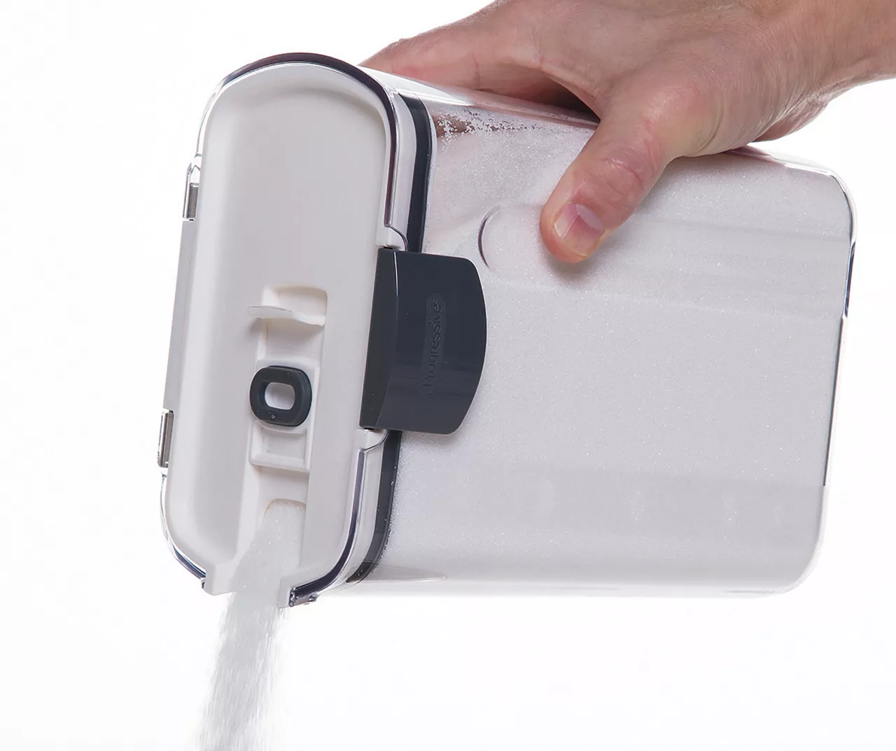 Store and serve sugar with the Prepworks Sugar ProKeeper! A silicone seal creates airtight storage to keep your sugar fresh. The clear container holds a standard 4-pound bag of sugar while including measurement markings on the side to show how much is left. When you need to cook or bake with sugar, us the airtight spout to pour out what you need.