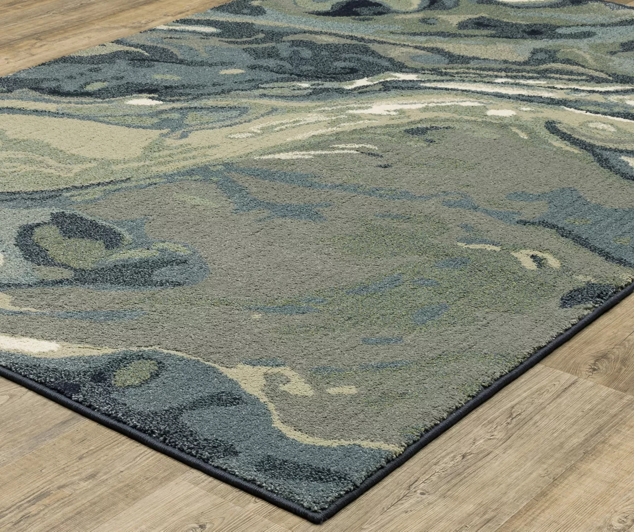The dense construction of the Sebrok collection features a high pile that’s power-loomed in the USA and made of supersoft polypropylene for a spread of comfort on your floors. Contrasting shades of navy and ivory are tempered with softer tones of blues and greens in an abstract design that accents your home with contemporary personality.