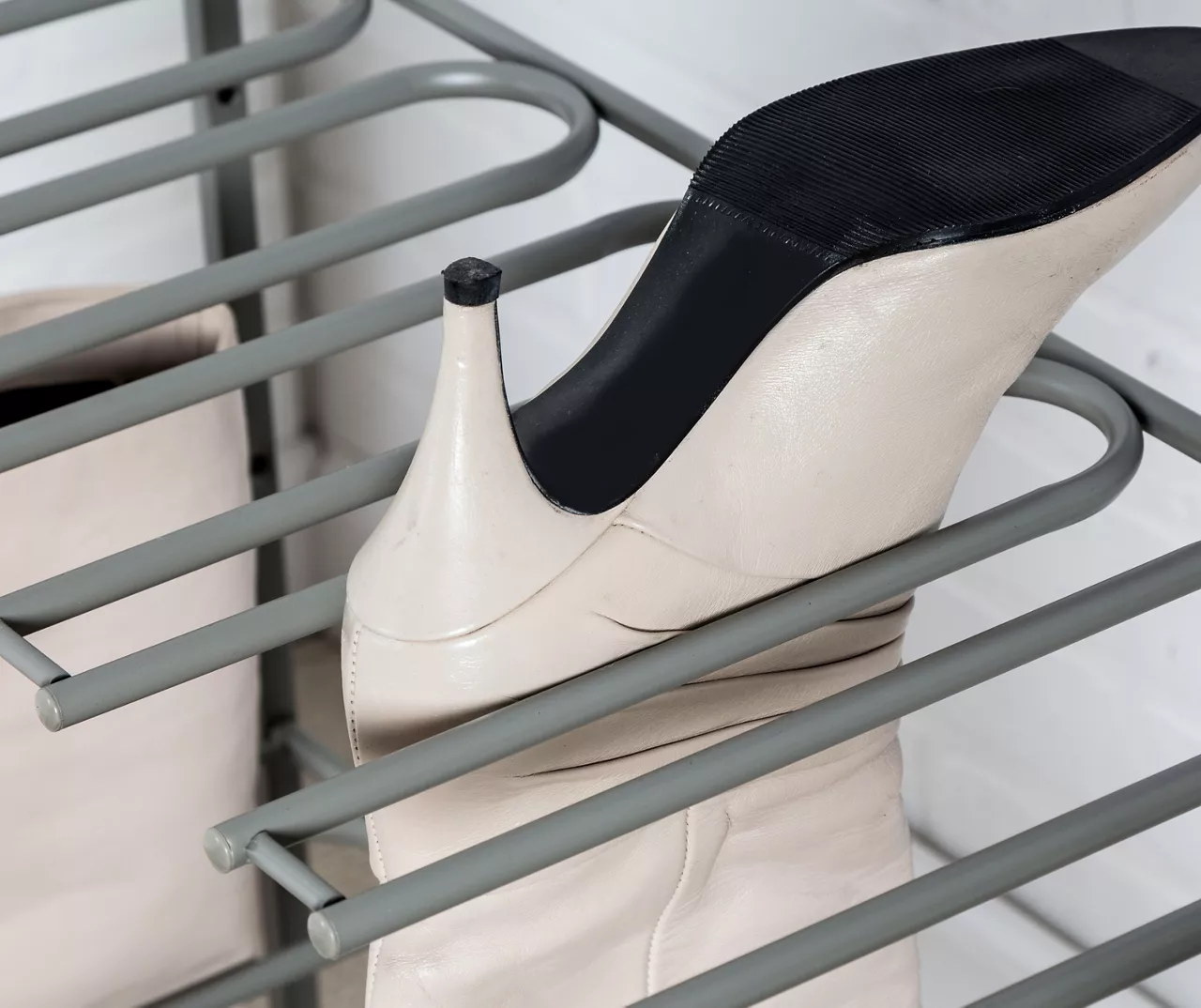 This boot storage rack from Honey-Can-Do features individual slots that can hold up to six pairs of mid- to full-length boots. The black base underneath is a waterproof catchall to keep your floors protected while your boots dry after a rainy or snowy day of adventure.