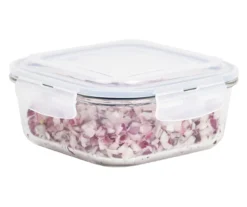 Clear & Indigo Glass Square Food Storage Container, (40 Oz.)