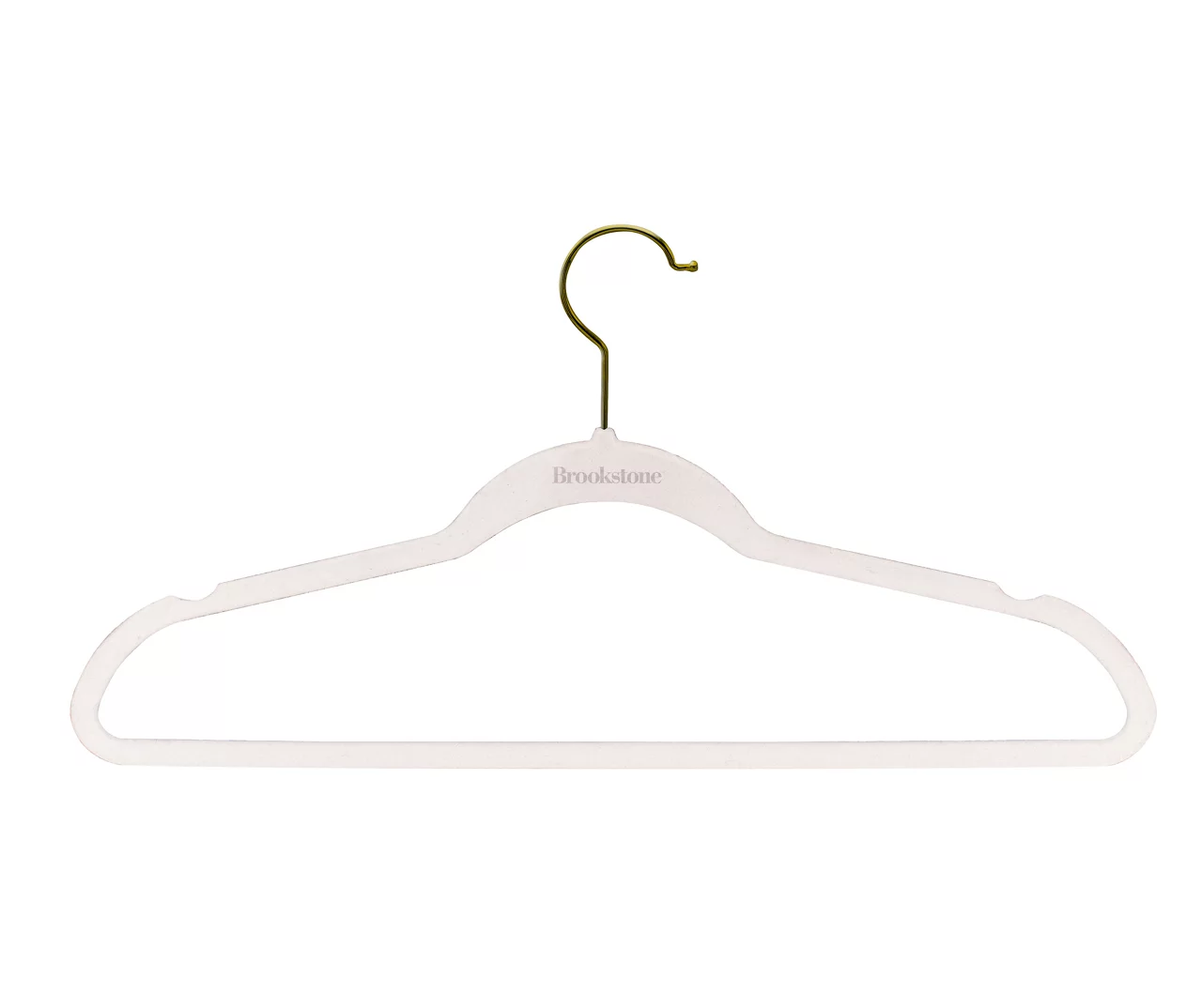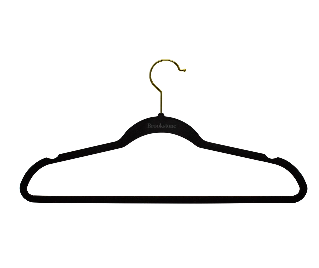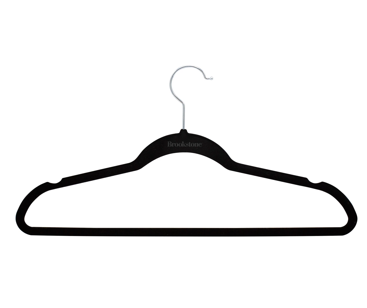 Make the most of your closet space with these hangers featuring a velvety finish that helps hold garments in place. Notches on the top also help to secure strappy items and the slender design is space-saving with modern appeal.