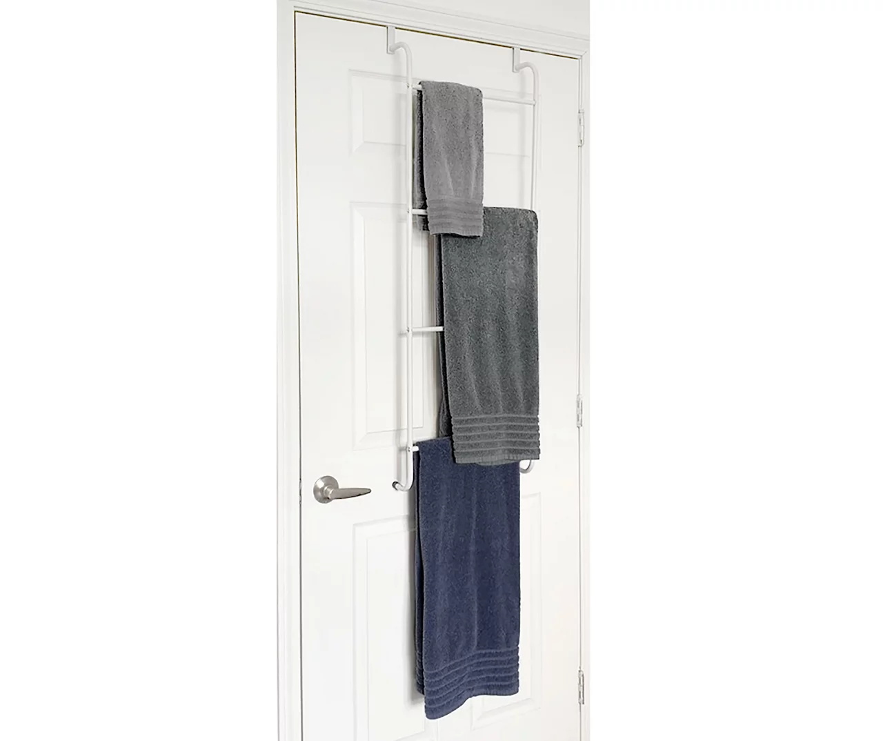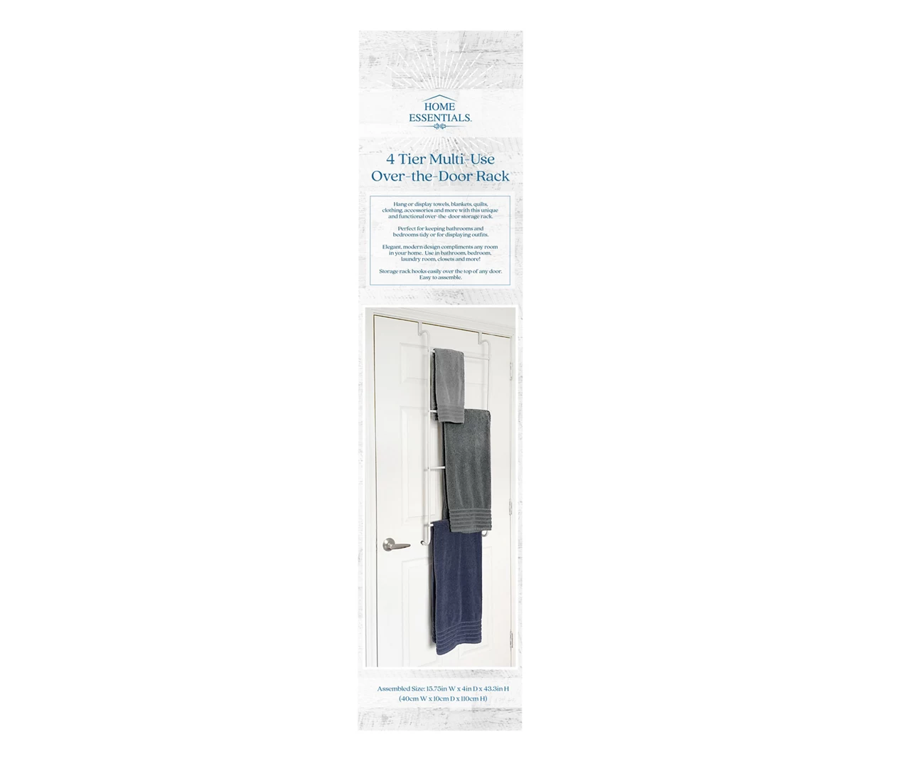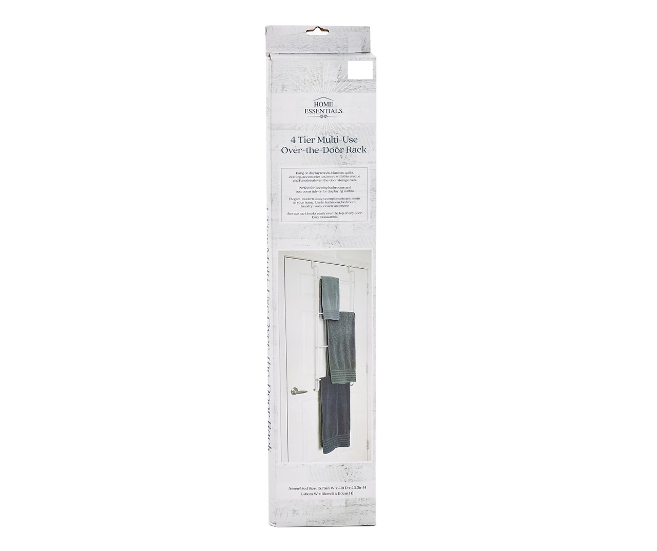 Add extra storage space to any door in your home with this over-the-door rack from Home Essentials that’s designed to fit most standard doors. Four bars allow you to hang towels, clothing, blankets and more. This handy pick is easy to assemble and comes with black caps on the feet to help keep things in place and protect your door surface.