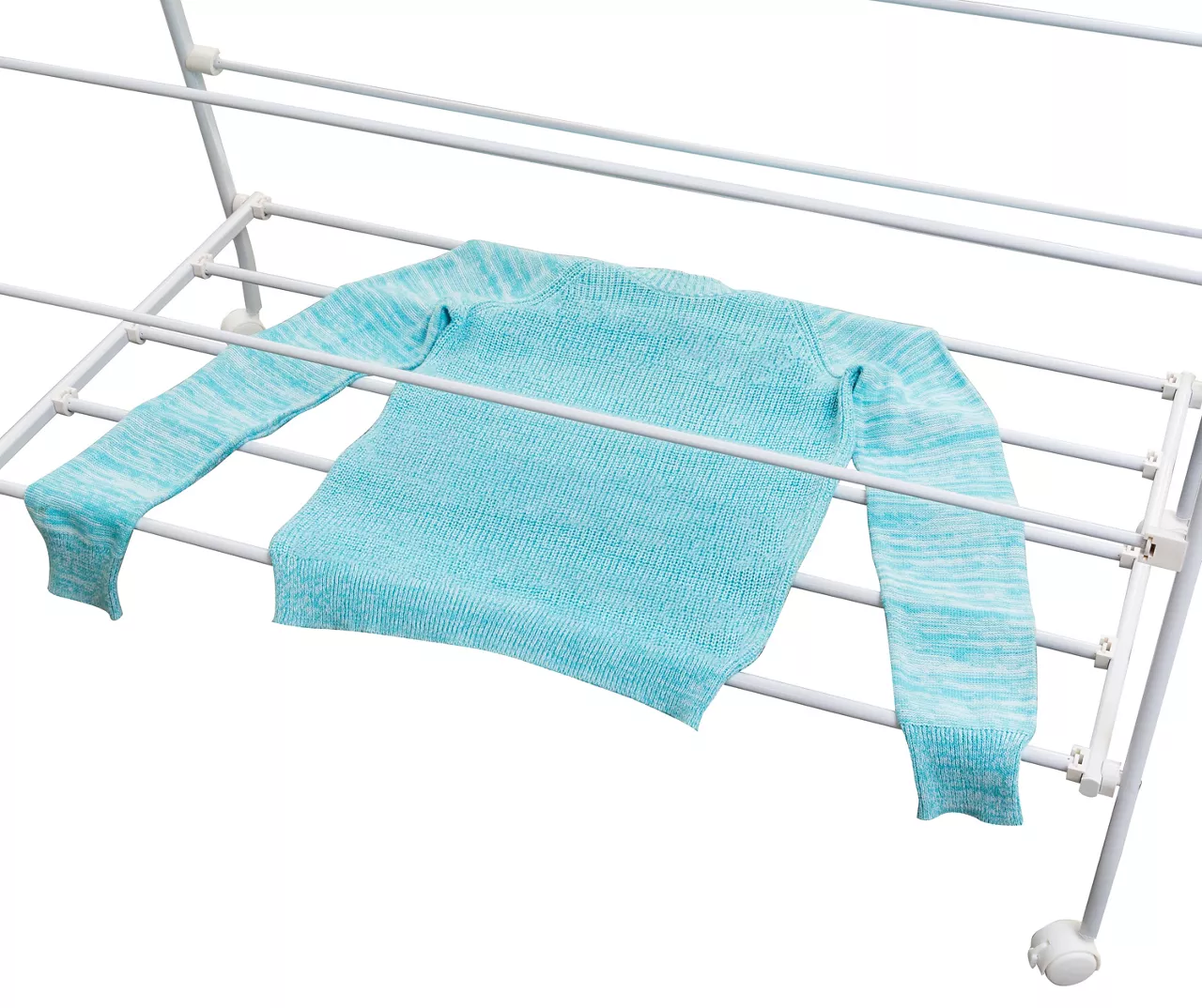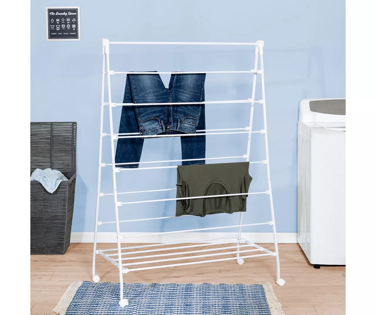 Tackle your laundry chores with this handy A-frame frack from Honey-Can-Do. It boasts 13 bars for storing clothing and a bottom shelf for shoes or other dry-flat items. When you’re done, it folds up flat for compact storage.