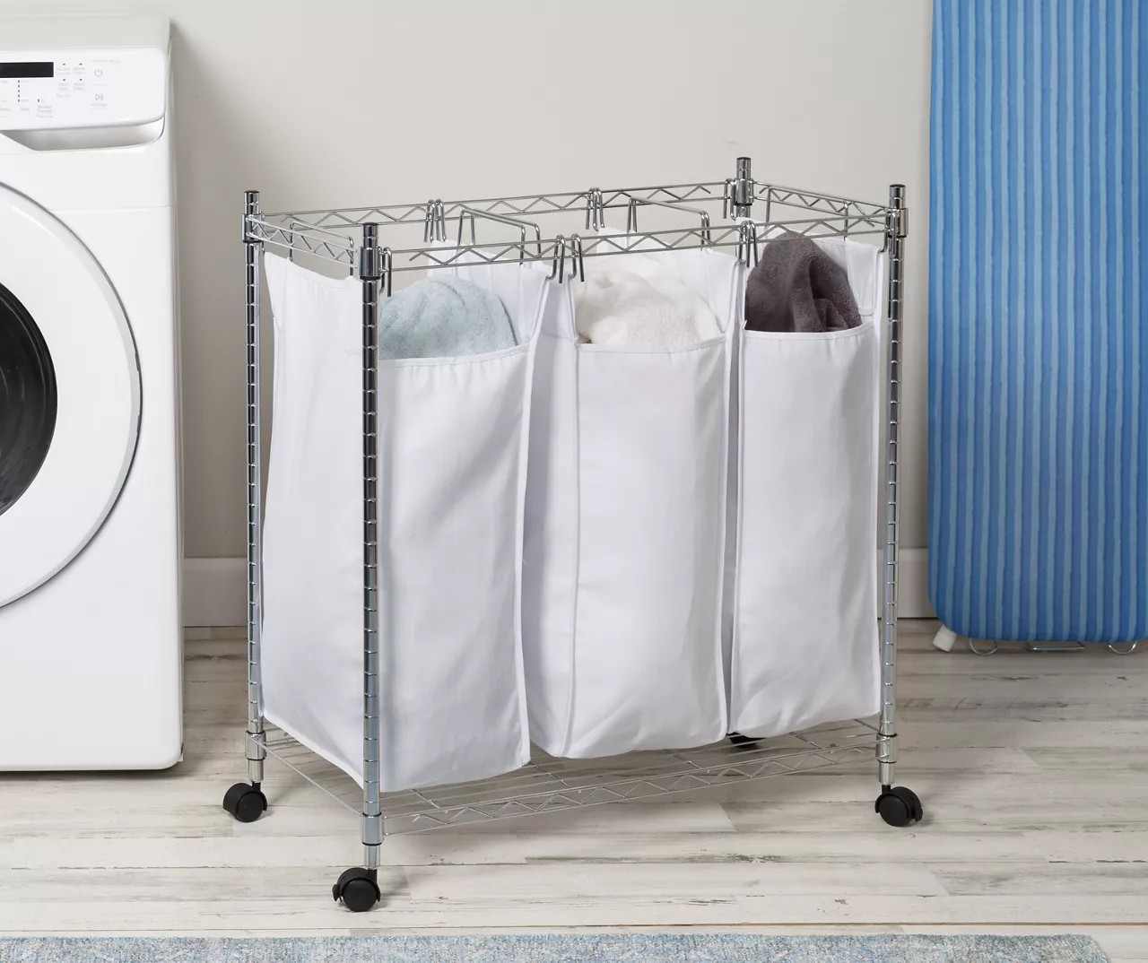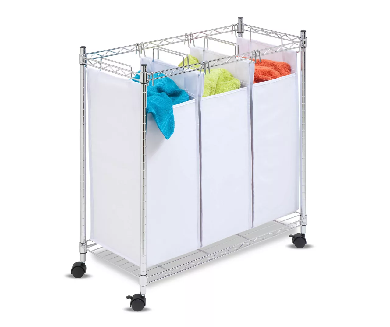 Store and organize your laundry loads with ease with this handy sorter from Honey-Can-Do. Three bags with metal handles sit in a sturdy steel frame, and rolling caster wheels make it easy to move this sorter around as needed.