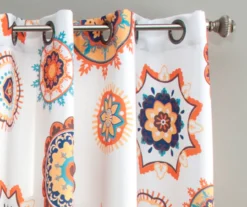 Adrianne White & Tangerine Floral Medallion Room-Darkening Grommet Curtain Panel Pair, (84″)