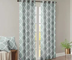 Sereno Fretwork Seafoam Light-Filtering Grommet Curtain Panel, (95″)