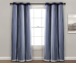 Lush Navy Blackout Grommet Curtain Panel Pair With Sheer Overlay, (84″)